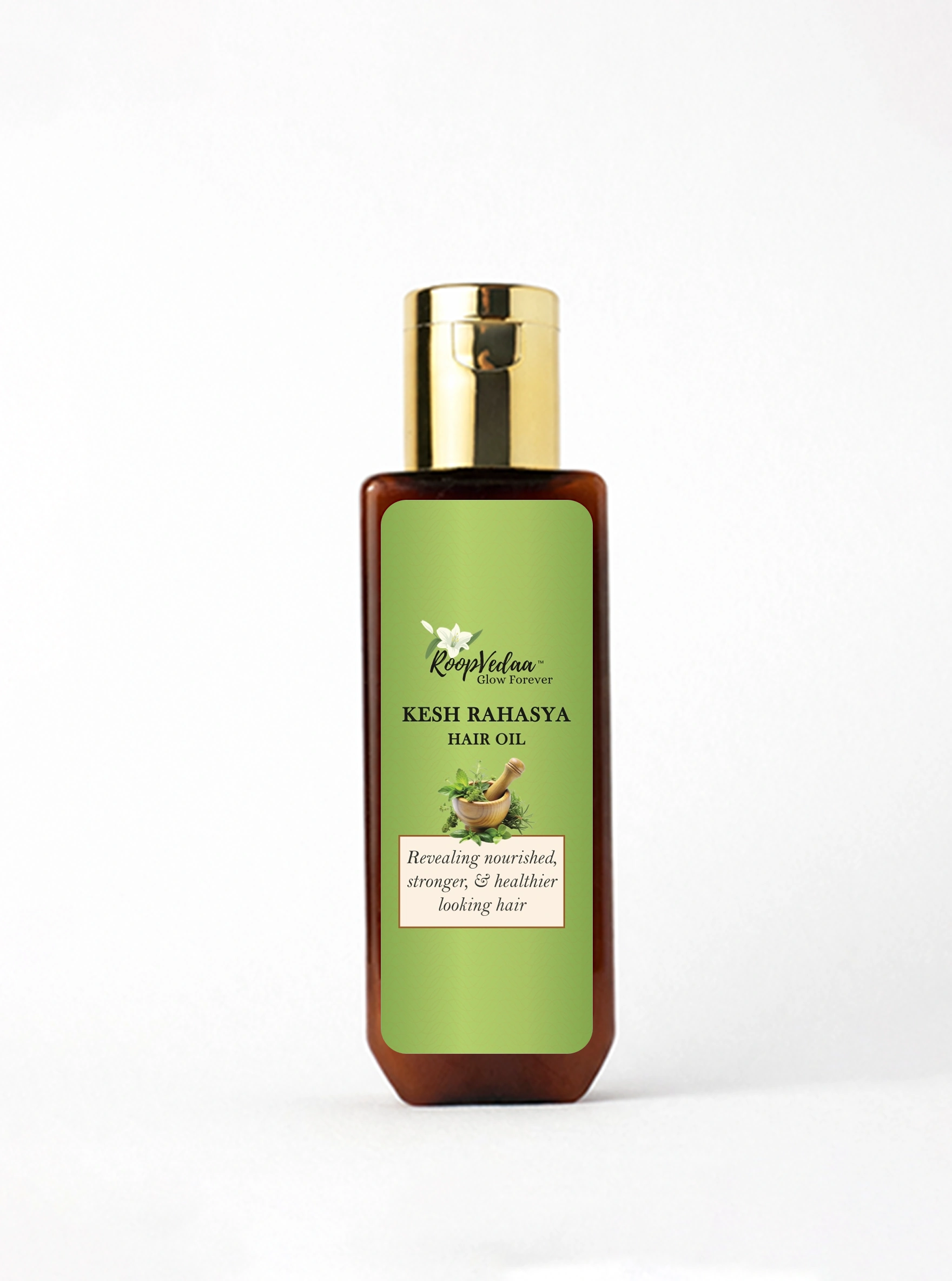 Kesh Rahasya Hair Oil is a deeply nourishing herbal hair oil formulated to support hair strength, scalp nourishment, and reduced hair fall caused by weakness and dryness. Crafted with a blend of carrier oils, Ayurvedic herbs, fresh botanicals, and essential oils, this oil helps improve scalp health, enhance hair texture, and promote stronger, healthier-looking hair with regular use and safe for kids.