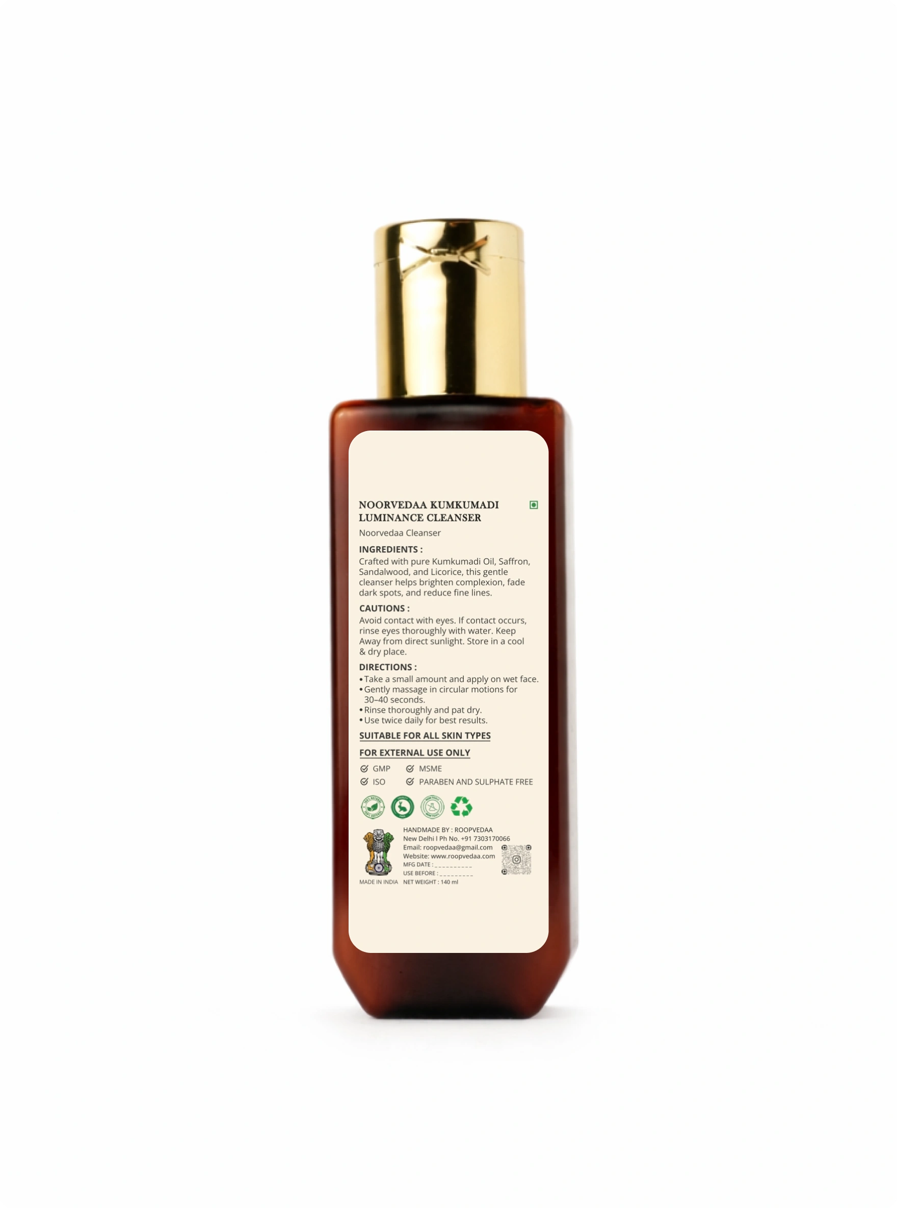 Noorvedaa Kumkumadi Luminance Cleanser is a gentle, nourishing face cleanser crafted with pure Kumkumadi oil and traditional botanicals. Designed to cleanse deeply without stripping the skin, this cleanser helps reduce fine lines, fade dark spots, and restore natural radiance. With regular use, it leaves the skin clean, balanced, and visibly luminous.