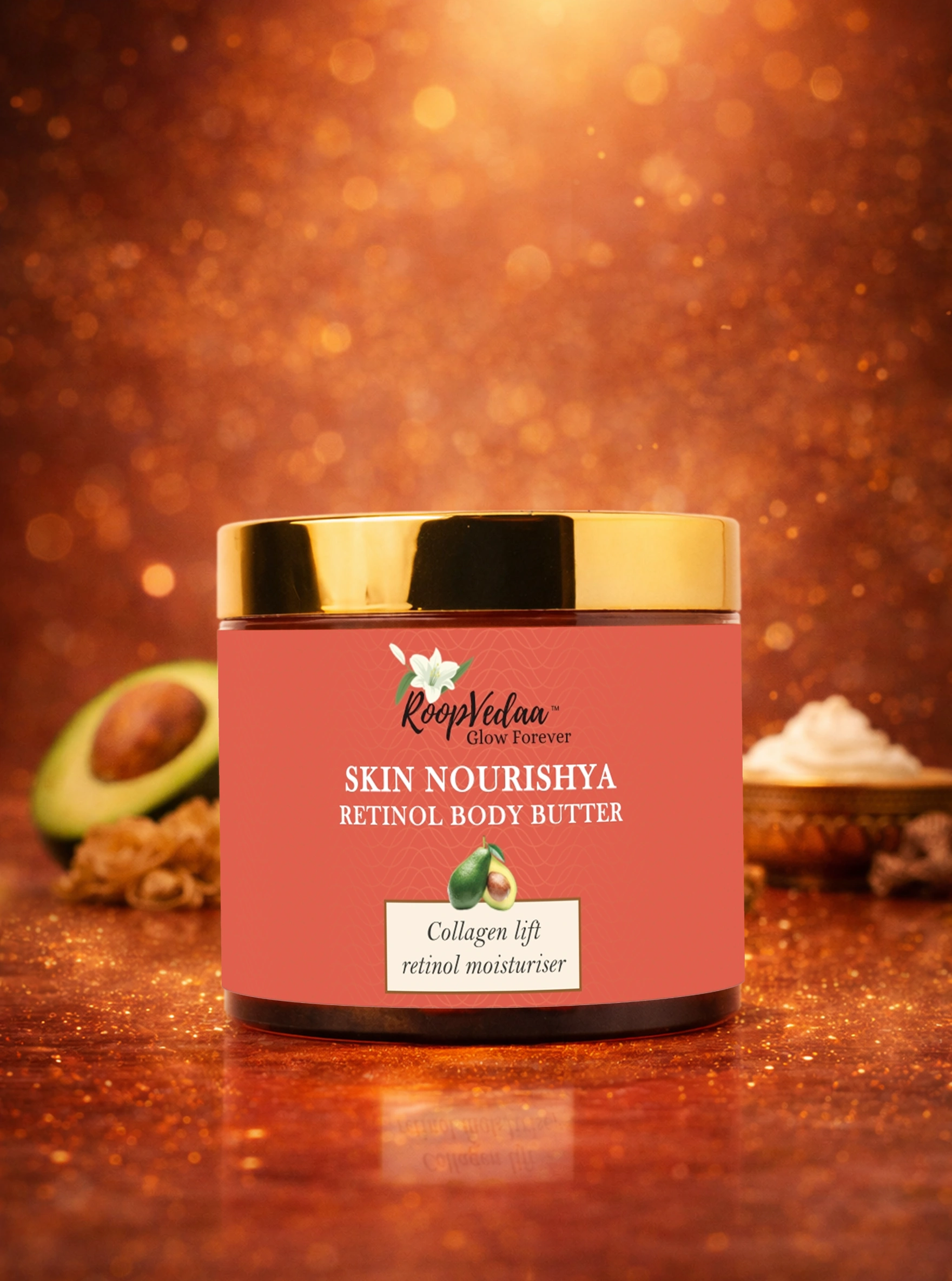 Skin Nourishya Retinol Body Butter is a luxurious cream-gel body treatment formulated to rejuvenate, nourish, and refine skin texture. Powered with encapsulated retinol, rich plant butters, and skin-strengthening actives, this body butter delivers deep hydration, smoother skin feel, and a velvety finish without leaving a greasy residue. Designed for night-time use to support skin renewal.