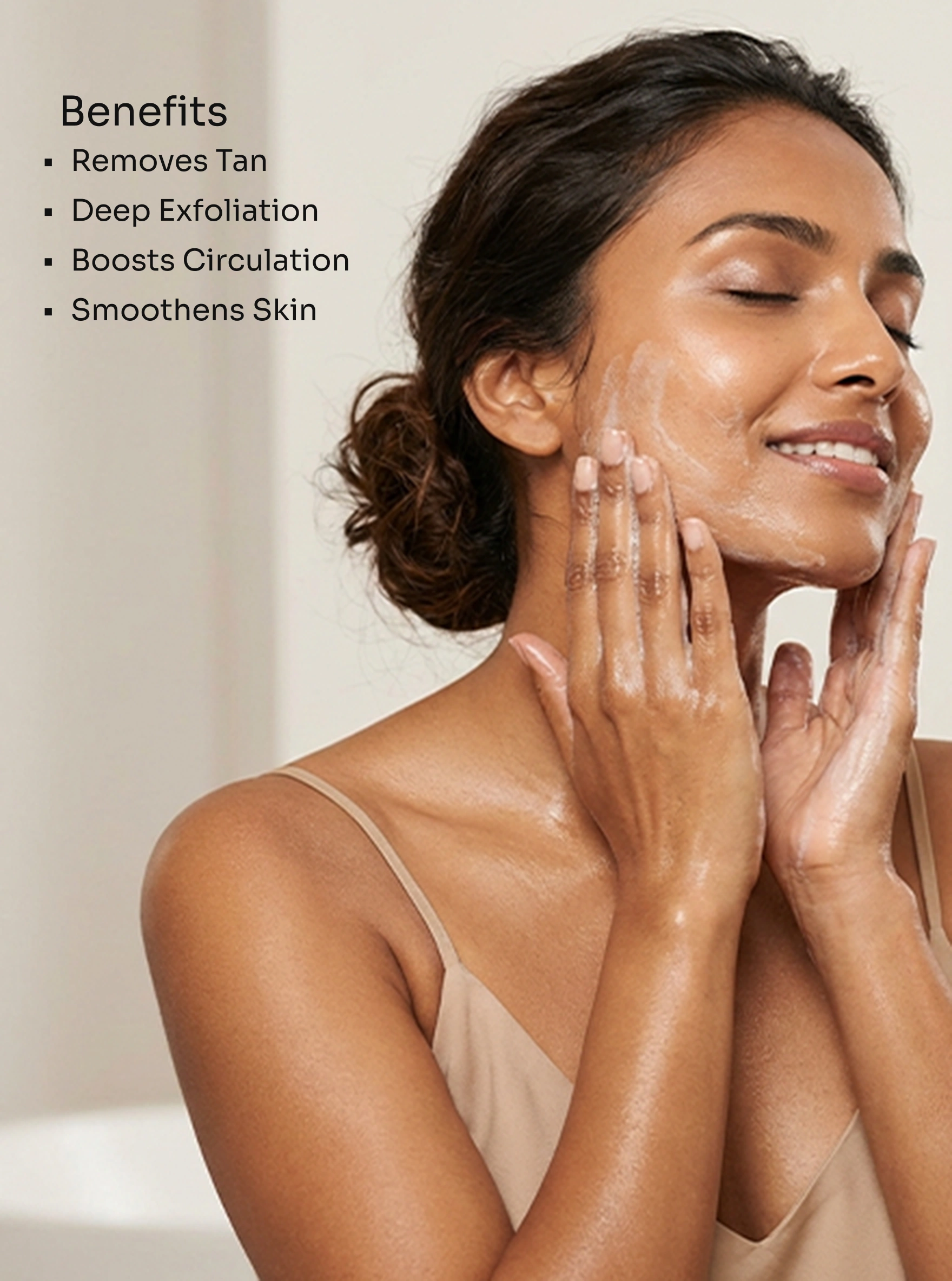 - Massage in circular motions to exfoliate and cleanse the skin.