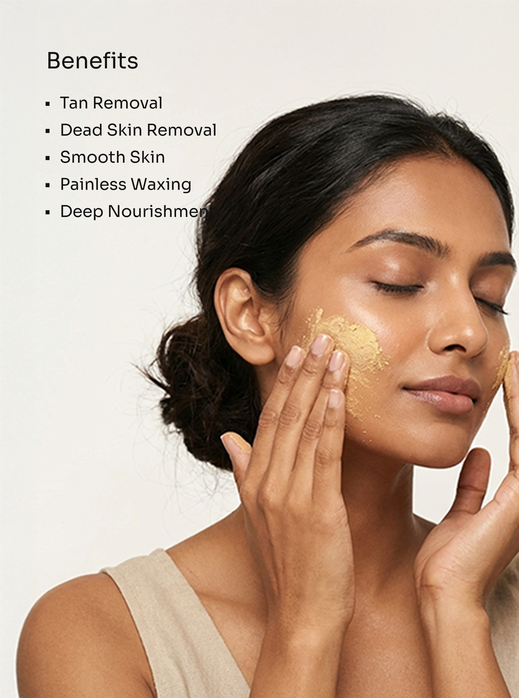 - Apply the prepared paste evenly on clean, dry skin, avoiding the eye area.